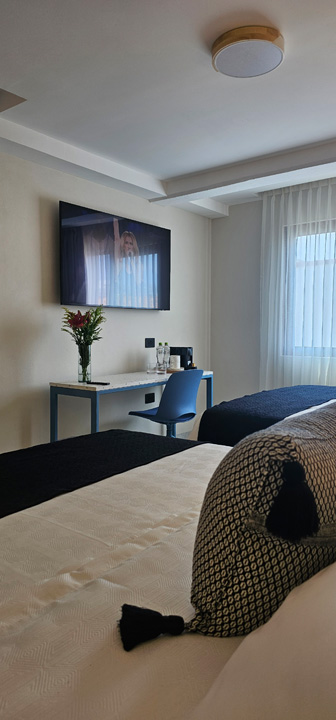 El encargo de nuestro cliente consistió en transformar una torre de departamentos que, en apariencia, estaba lista para operar. Sin embargo, tras un análisis profundo del espacio y su adecuación al programa de necesidades, el proyecto evolucionó hacia un hotel & suites que integra 29 estudios, 4 habitaciones sencillas, áreas operativas y amenidades como lobby, cafetería, sala de juntas y farmacia.
