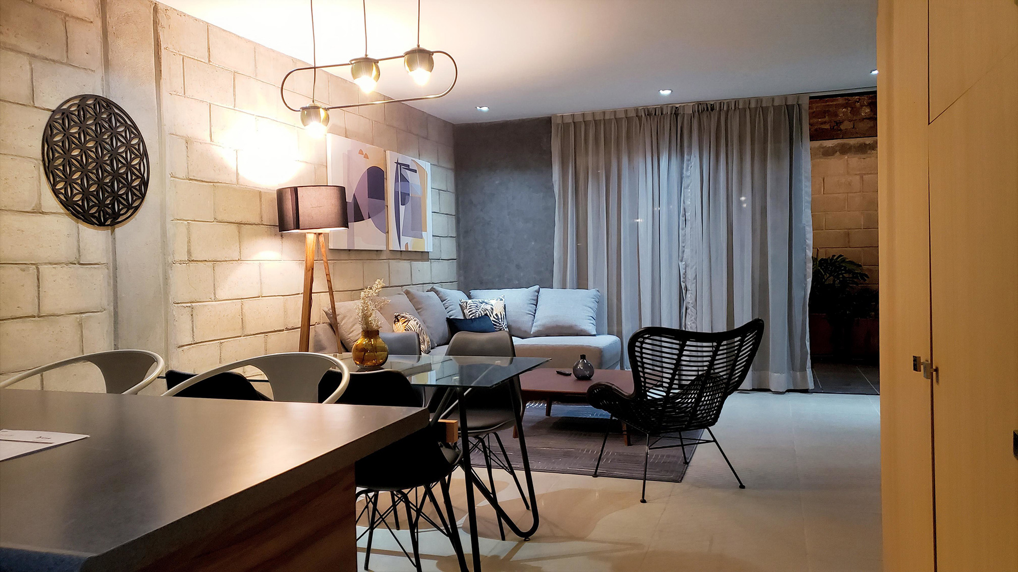 Este proyecto residencial llave en mano fue concebido para una familia joven que buscaba un hogar cálido, funcional y con identidad propia. Cada espacio fue diseñado para responder a las dinámicas cotidianas con soluciones estéticas y prácticas, integrando mobiliario, acabados y ambientación en una propuesta coherente y personalizada. Este departamento es un ejemplo de cómo el diseño residencial puede ser emocional, eficiente y profundamente humano. Un hogar que evoluciona con quienes lo habitan.